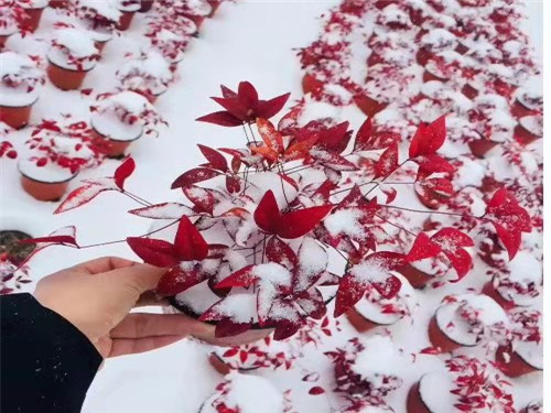 火焰南天竹常綠灌木、矮生匍匐、適應性廣、秋冬紅葉、紅葉持久、四季不落葉、管理簡單、以及工廠化生產方式,對這樣的產品,無論是工程應用還是庭園配置,市場前景非常寬廣,尤其在北方冬季,不但能彩花林下景觀,還能起到封塵固沙的生態(tài)作用。